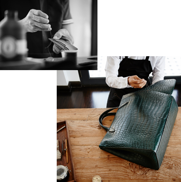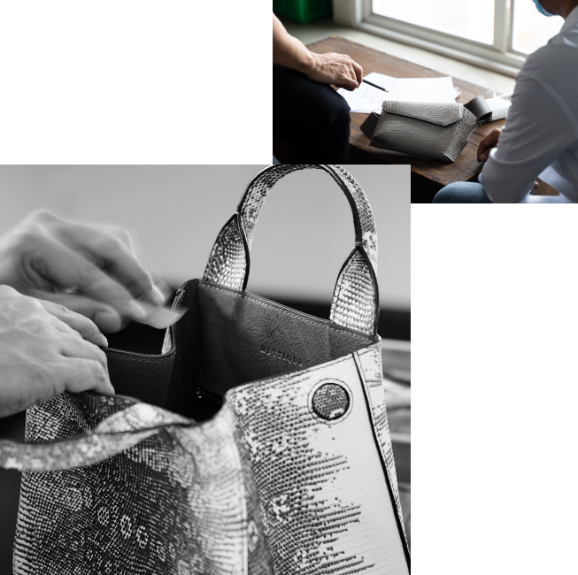 As many luxury products are beginning to substitute craftsmanship with machines, we at METTIQUE pledge to conserve the craftsmanship tradition. All of the steps conducted at METTIQUE atelier are 100% hand-made. This is to not only render each piece of work one-of-a-kind but also to achieve durability and that hand-made charisma that machine-made products can never achieve.