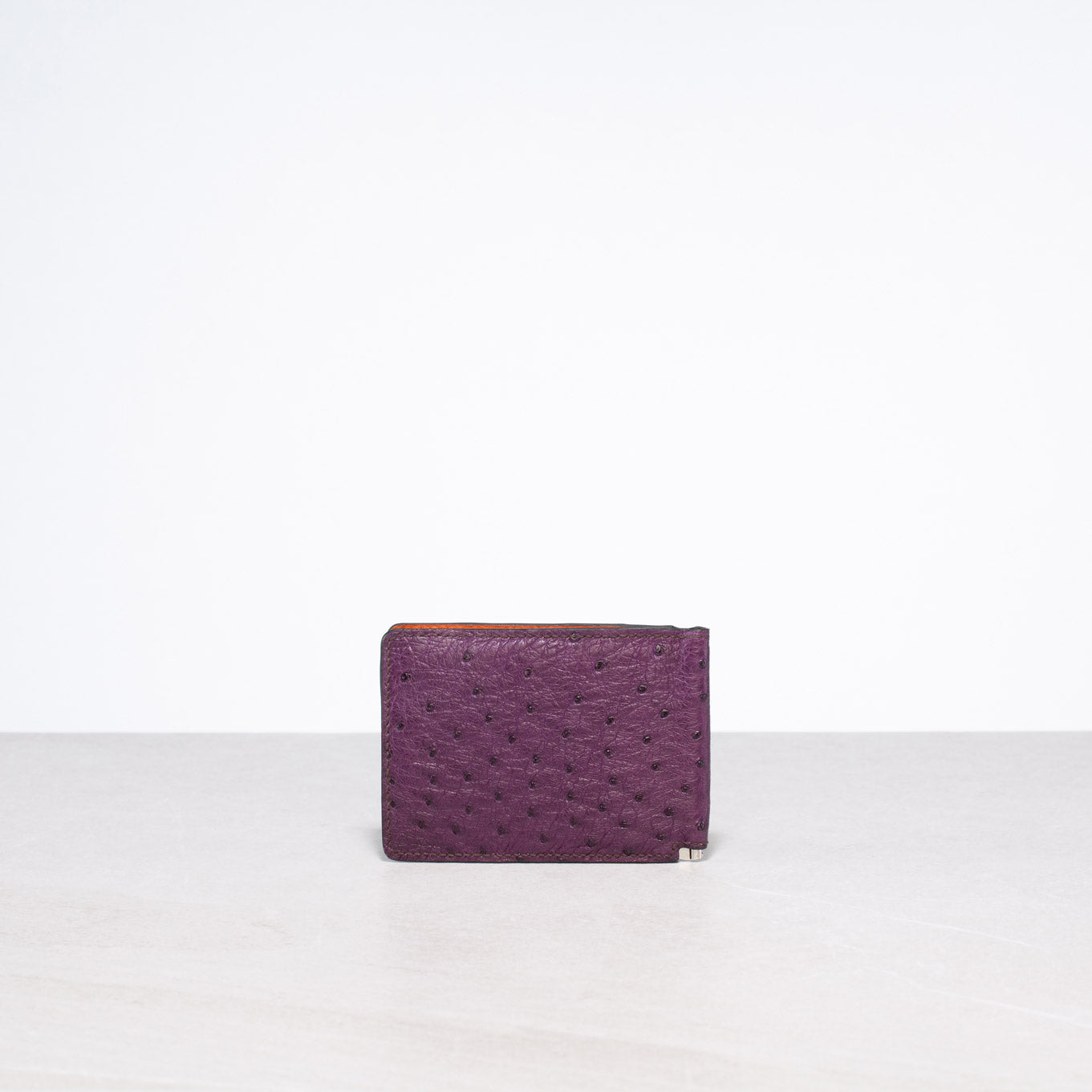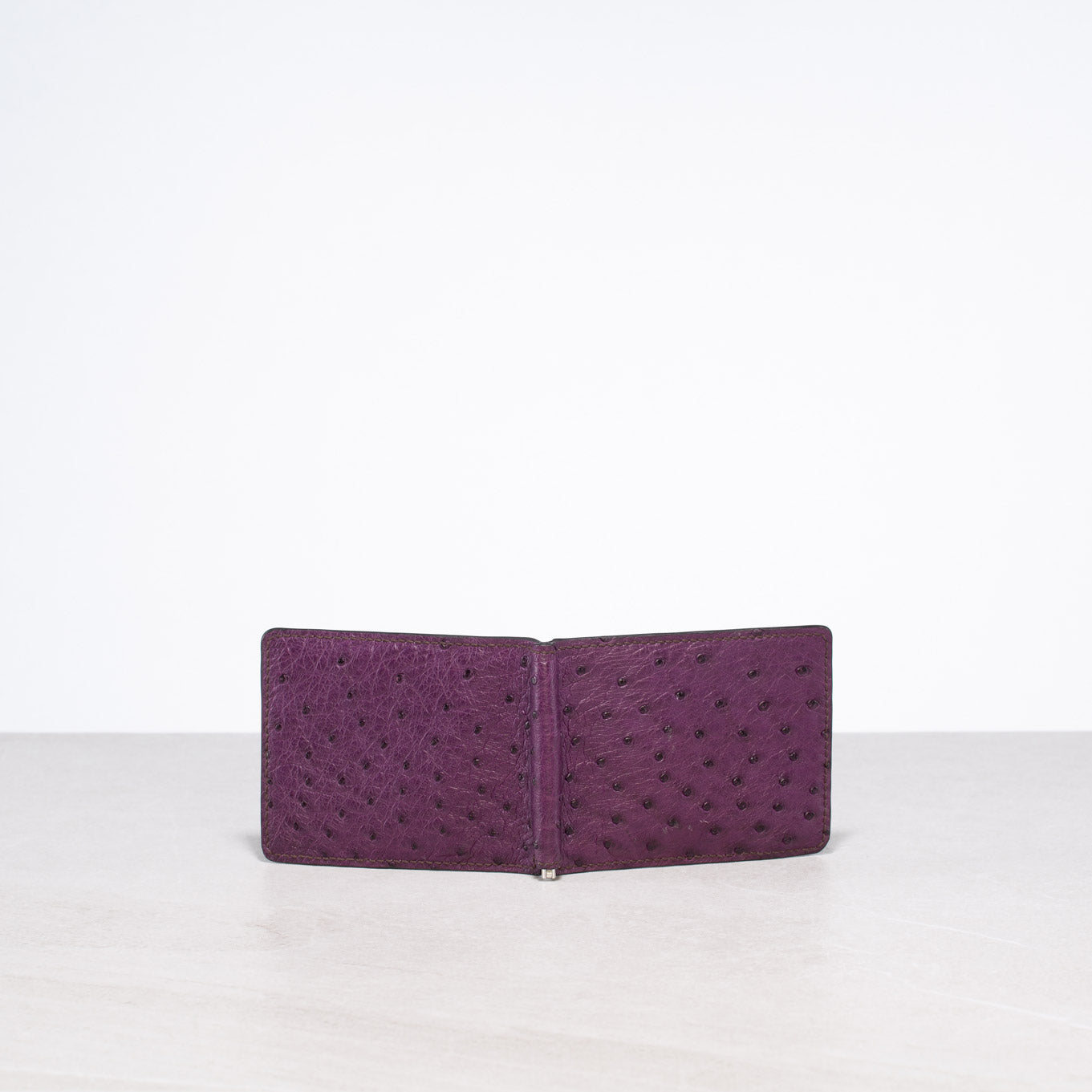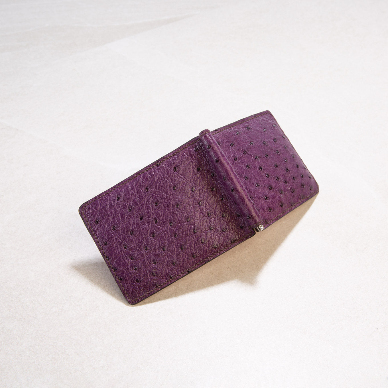African violet South African ostrich with Kroket Italian vacchetta vegetable-tanned cowhide interior.